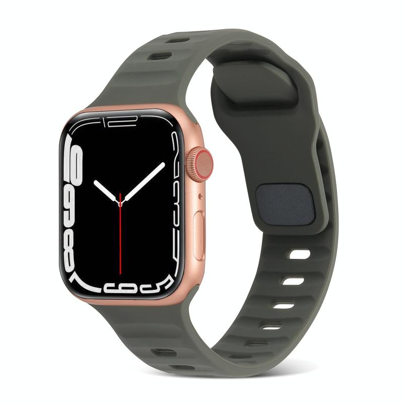 Για Apple Watch Series 4 40mm Λουρί Σιλικόνης με Αγκράφα Τετράγωνου Σχήματος σε Ρίγες (Σκούρο πράσινο)
