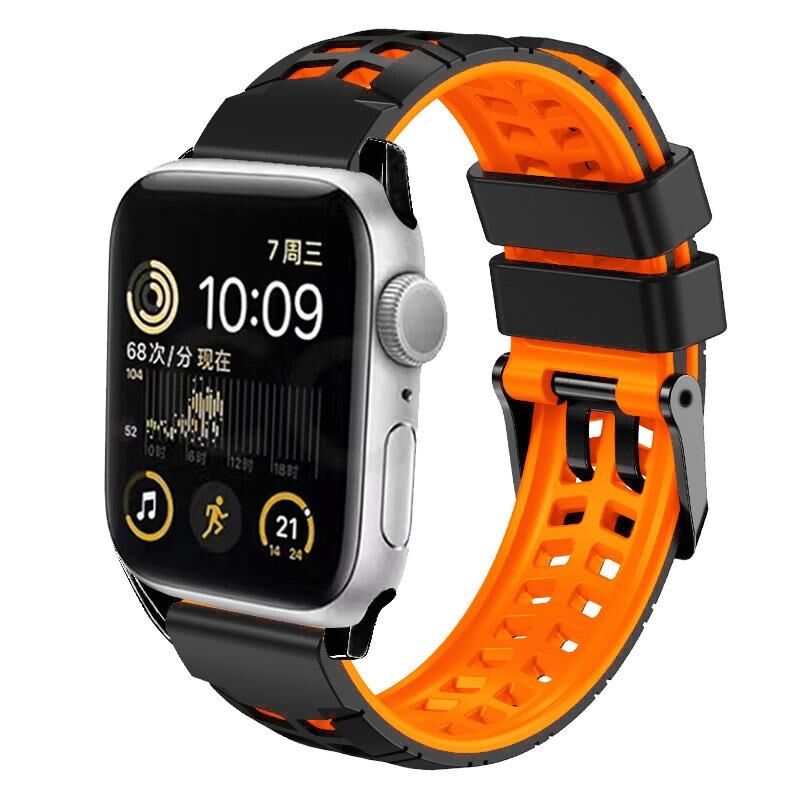 For Apple Watch Series 4 40mm Twill Dual-row Buckle Silicone Watch Band(Black Orange)