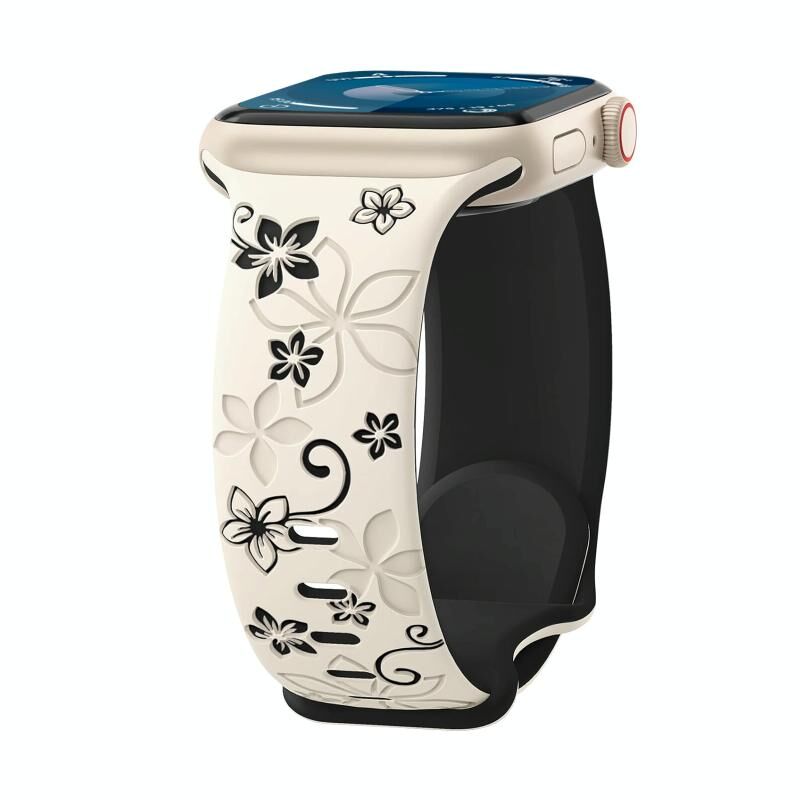 Για Apple Watch Series 4 44mm Bauhinia Διχρωμικό Χαραγμένο Λουράκι Σιλικόνης (Μαύρο Αστερόφωτο)