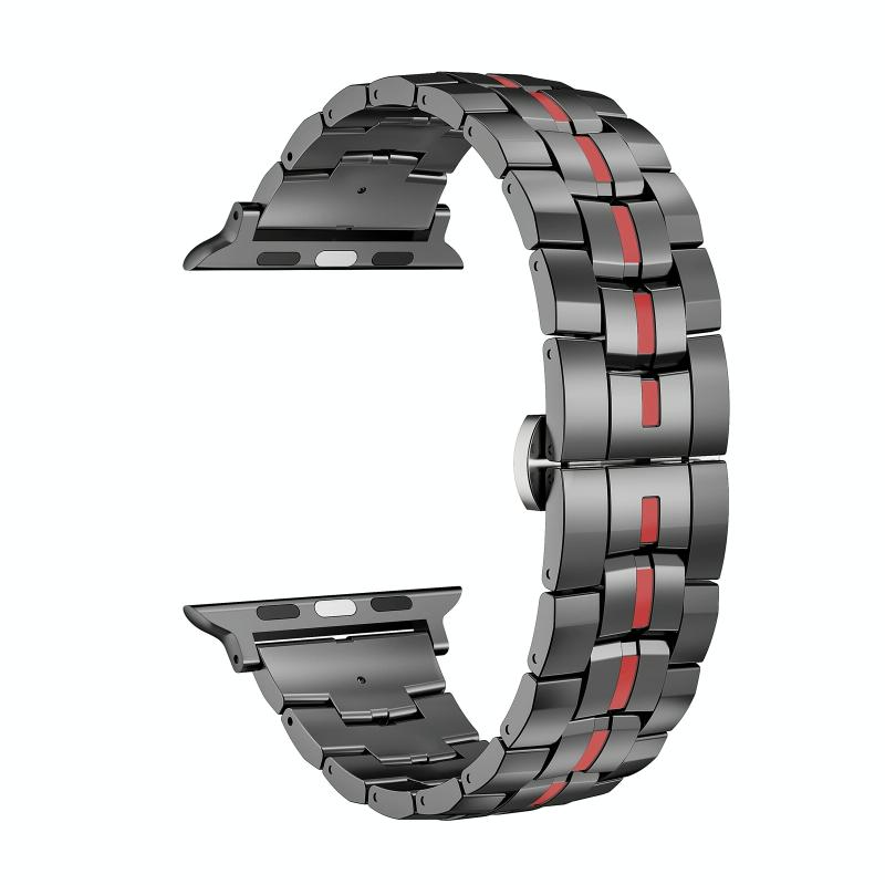 For Apple Watch Series 4 44mm Butterfly Buckle 5-Beads Metal Watch Band(Black Red)