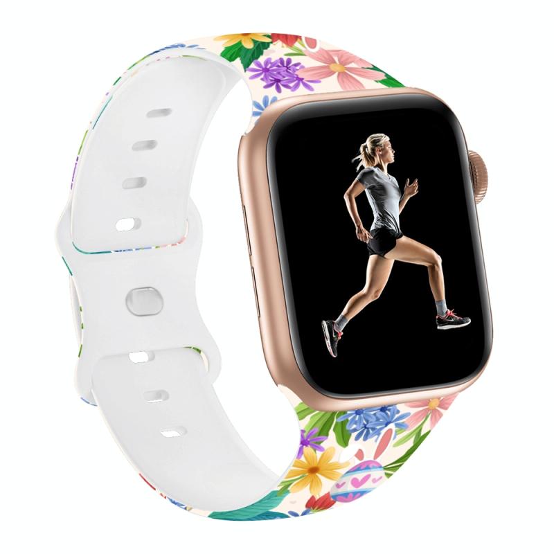 Για Apple Watch Series 4 44mm Λουρί Σιλικόνης με Αγκράφα Πεταλούδας με Εκτύπωση Πασχαλινή (Χρώμα Λουλούδια)
