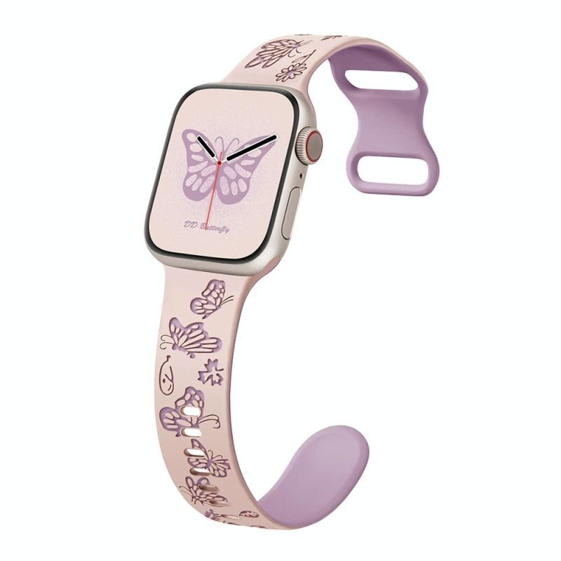 For Apple Watch Series 4 44mm Colorful Butterfly Pattern 8-shaped Buckle Silicone Watch Band(Pink Light Purple)