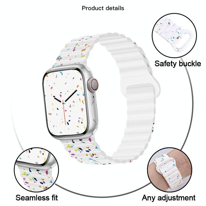 Για Apple Watch Series 4 44mm Έγχρωμα Σημεία Μαγνητικό Λουράκι Σιλικόνης (Λευκό)