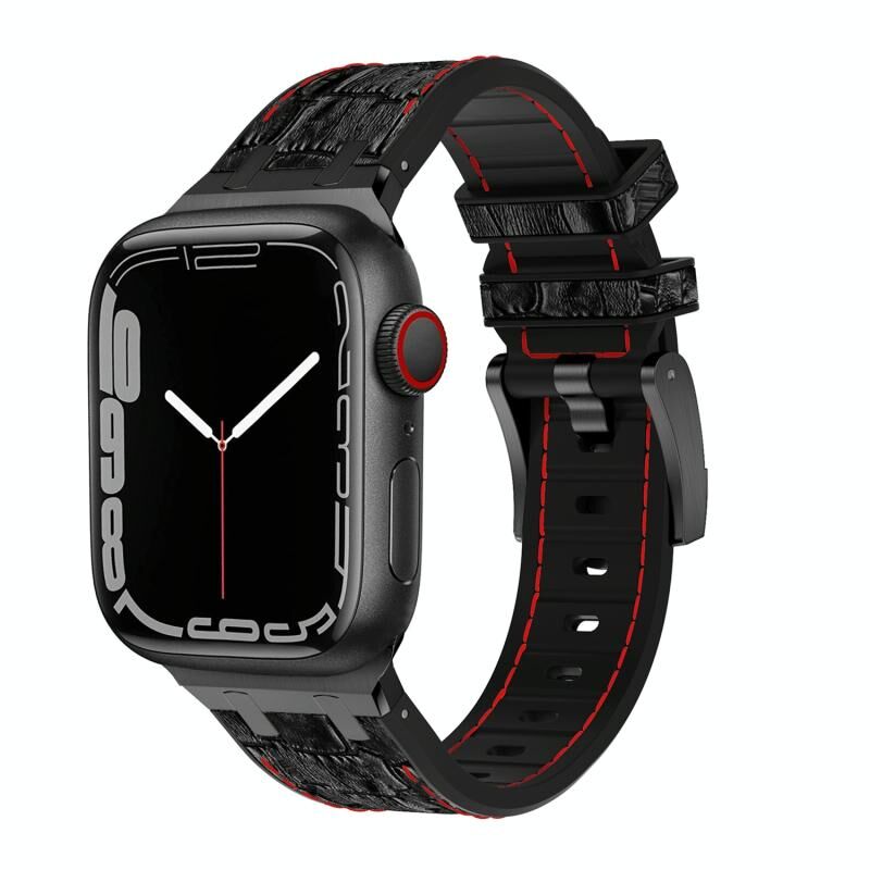 Για Apple Watch Series 4 44mm Λουρί Σιλικόνης Υγρού με Υφή Κροκόδειλου (Μαύρο Κόκκινο Μαύρο)