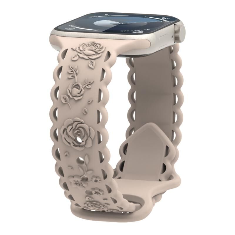 Για Apple Watch Series 4 44mm Δαντέλα 3D Ροζ Χαραγμένο Λουράκι Σιλικόνης (ρόδινο)