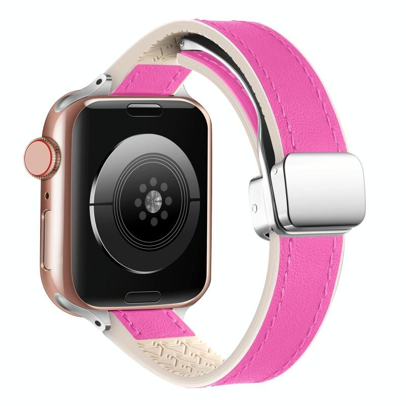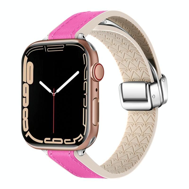 Για Apple Watch Series 4 44mm Μαγνητικό Δερμάτινο Λουράκι με Σιλικόνη (Κόκκινο Ρόδι)