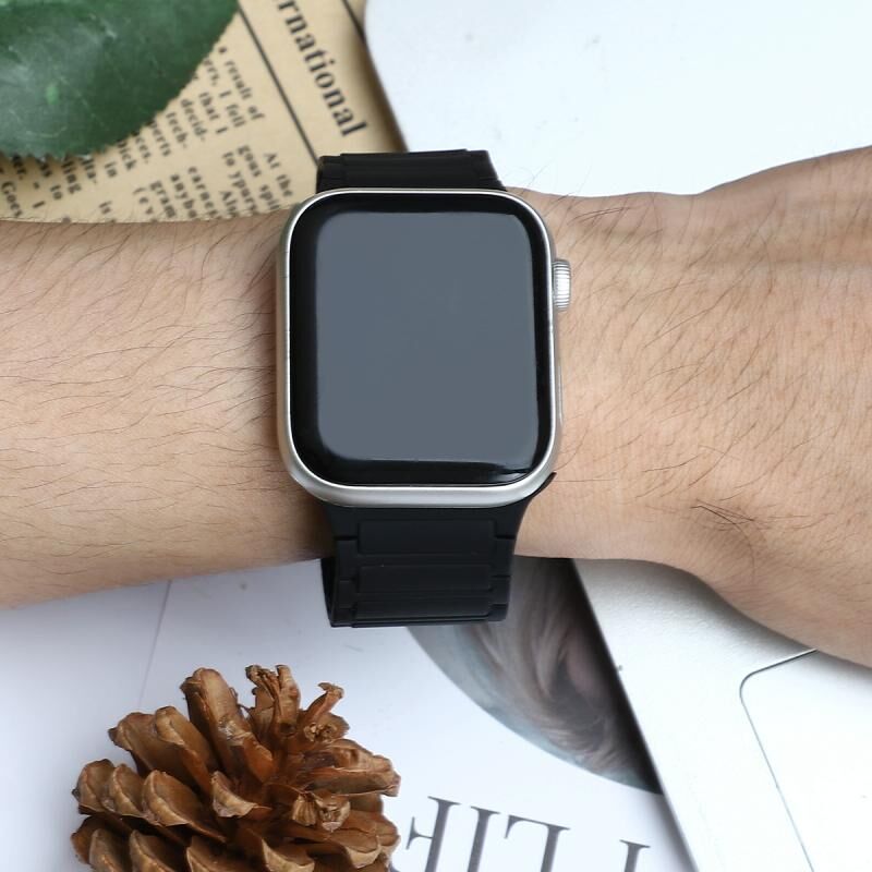 Για Apple Watch Series 4 44mm Μαγνητικό Λουρί Σιλικόνης (Μαύρο)