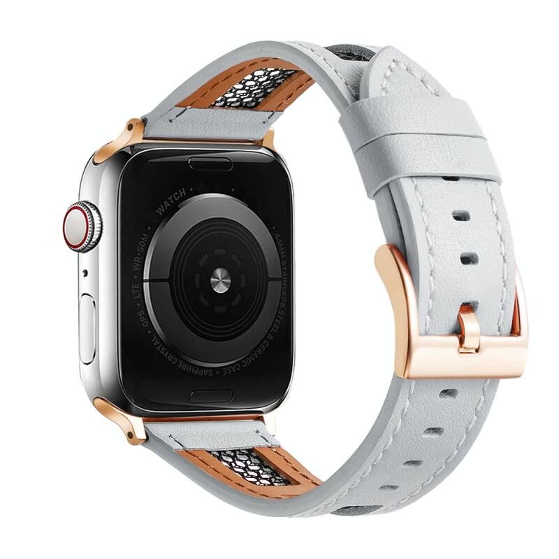 Για Apple Watch Series 4 44mm Mesh Calfskin Γνήσιο Δερμάτινο Λουράκι (Λευκό)