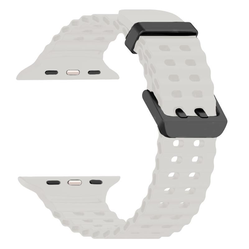 For Apple Watch Series 4 44mm Ocean Dual-Row Hole Silicone Watch Band(Starlight)
