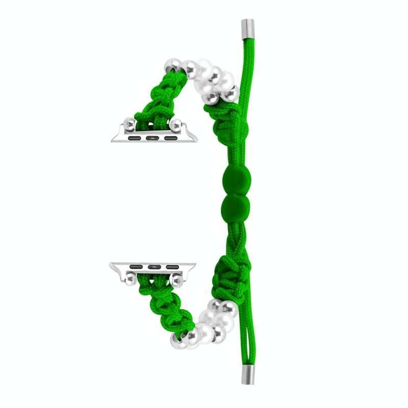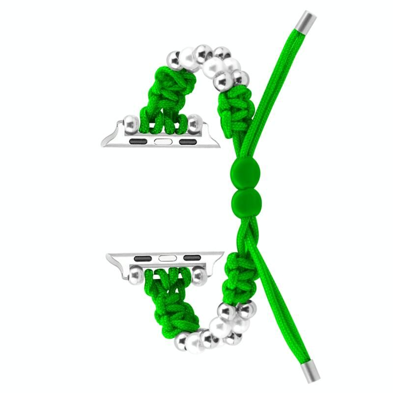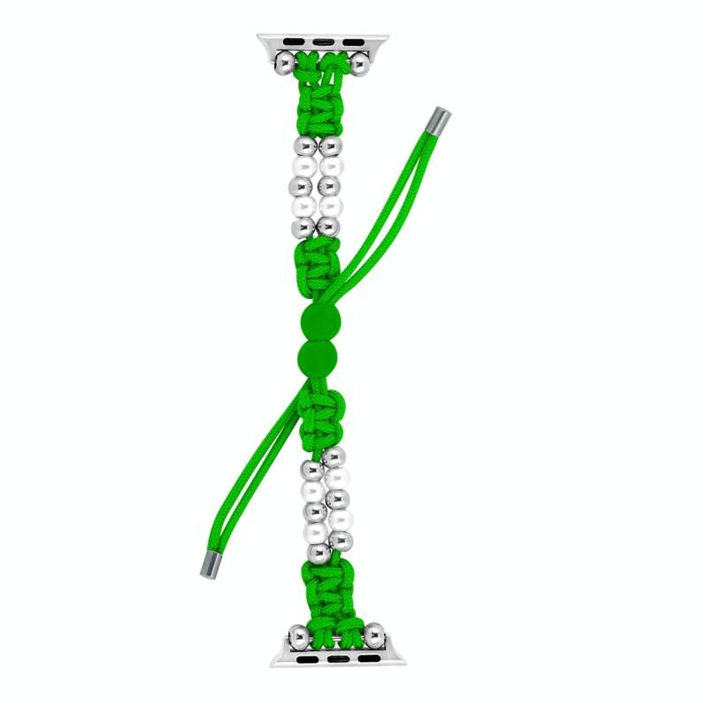 Για Apple Watch Series 4 44mm Λευκό Πλεκτό Μπρασελέ με Χάντρες Paracord και Κορδόνι Σύσφιξης (πράσινο)