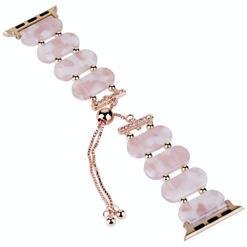 For Apple Watch Series 4 44mm Resin Retractable Chain Watch Band(Pink Flower)