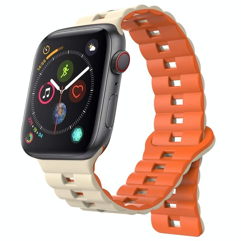 Για Apple Watch Series 4 44mm, Λουρί Σιλικόνης με Μαγνητικό Κούμπωμα Αντίστροφης Πόρπης, Δύο Χρωμάτων (Αστρόφωτο+Πορτοκαλί)