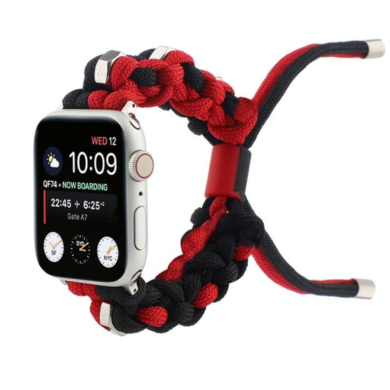 For Apple Watch Series 4 44mm Screw Nut Dual-Color Braided Paracord Watch Band(Black Red)