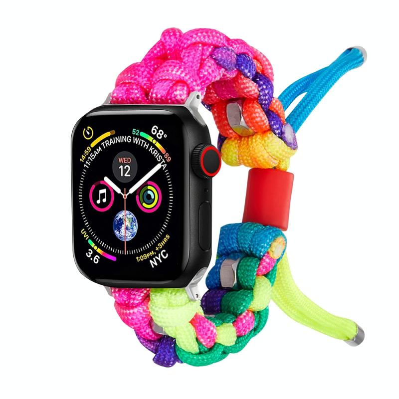 For Apple Watch Series 4 44mm Screw Nut Dual-Color Braided Paracord Watch Band(Rainbow)
