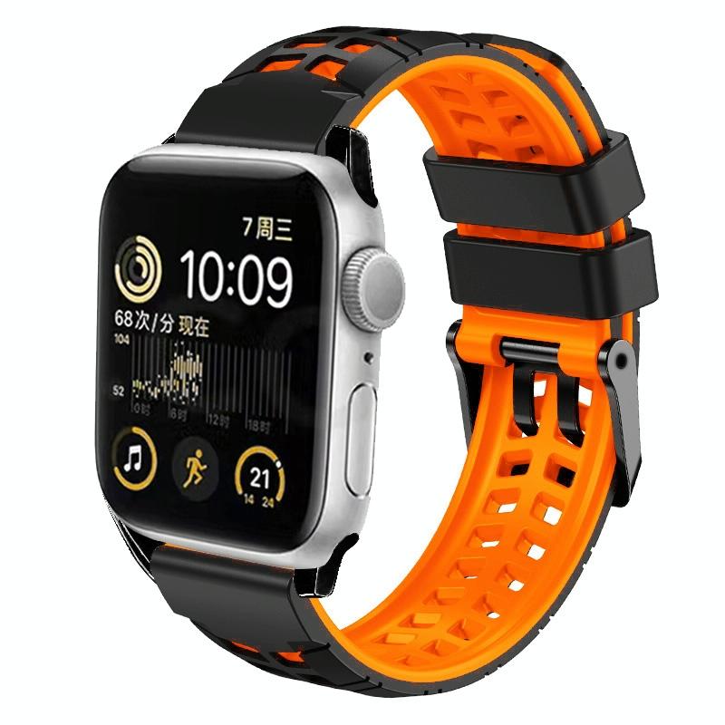 For Apple Watch Series 4 44mm Twill Dual-row Buckle Silicone Watch Band(Black Orange)