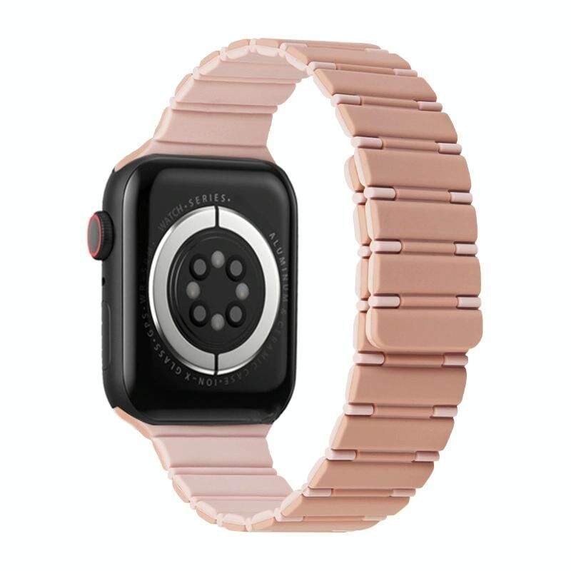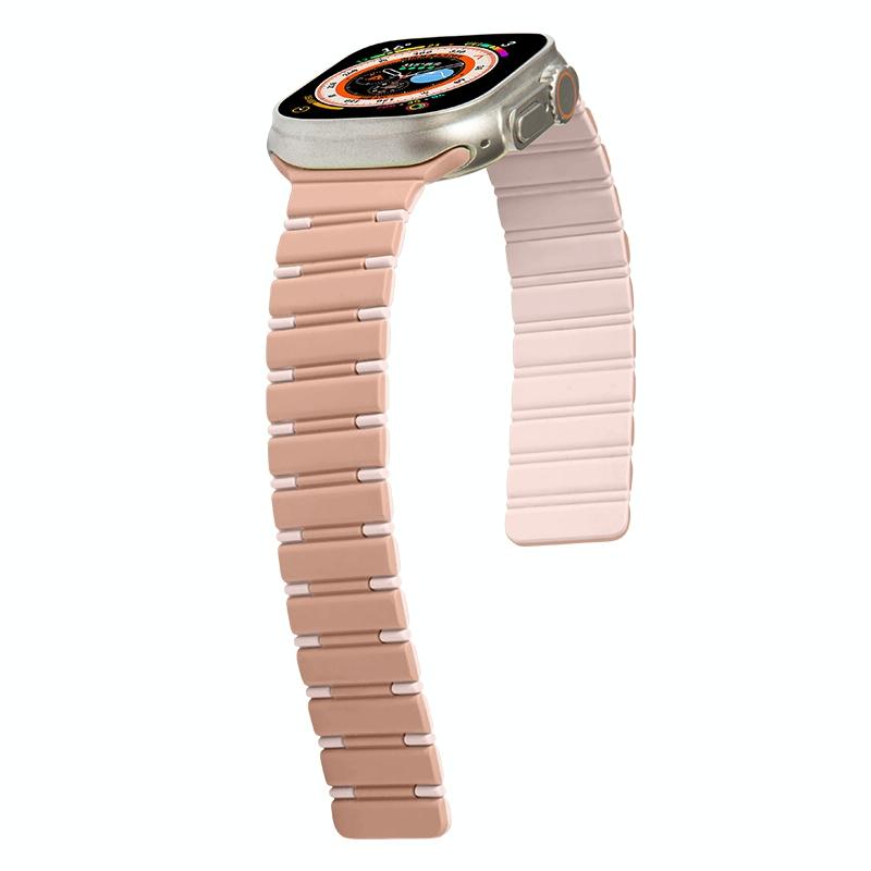 Για Apple Watch Series 4 44mm Διχρωματικό Μαγνητικό Λουράκι Σιλικόνης (Ροζ Ρόδι Γκρι)