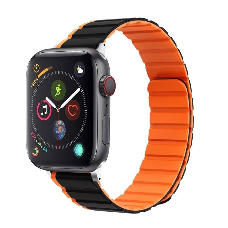Για Apple Watch Series 4 44mm ZGA Διχρωματικό Μαγνητικό Λουράκι Σιλικόνης (Μαύρο+Πορτοκαλί) (Μαύρο+Πορτοκαλί)
