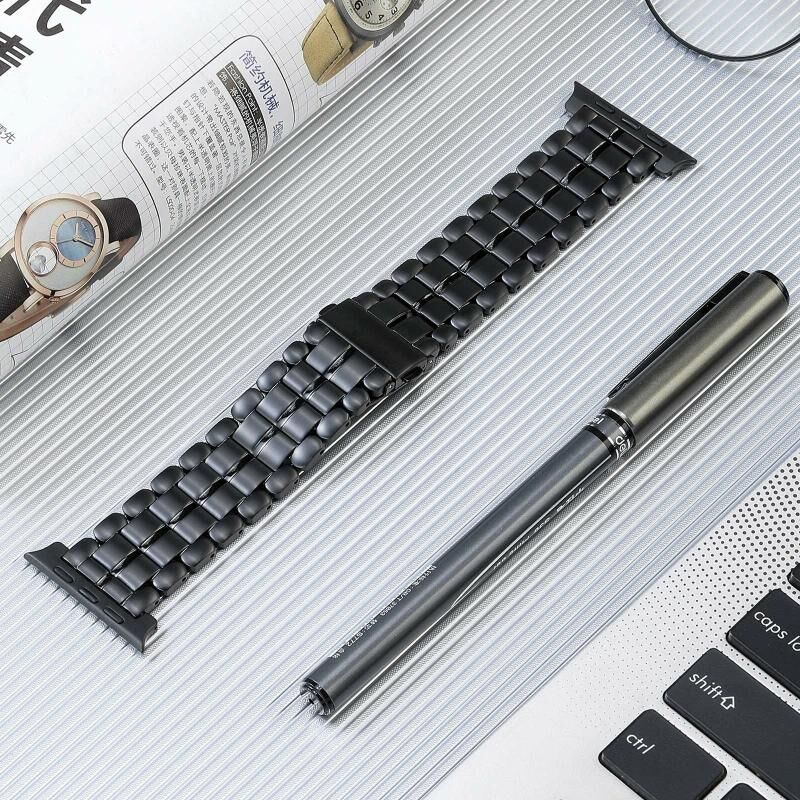 Για Apple Watch Series 5 40mm Λουράκι Ρολογιού από Χάλυβα Τιτανίου με Πέντε Χάντρες (Μαύρο)