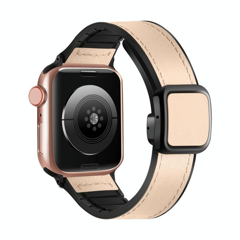 Για Apple Watch Series 5 40mm Δερμάτινο Μαγνητικό Τετράγωνο Κούμπωμα PU Λουράκι Σιλικόνης (Βερίκοκο)