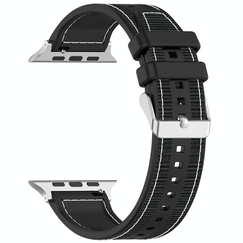 Για Apple Watch Series 5 40mm Απλή Αγκράφα Υβριδική Πλεξούδα Νάιλον Σιλικόνης Λουράκι Ρολογιού (Μαύρο)