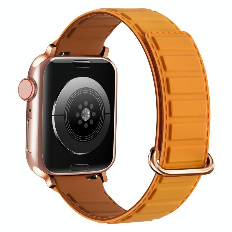 For Apple Watch Series 5 40mm Reverse Buckle Magnetic Silicone Watch Band(Rose Buckle Poppy Brown)