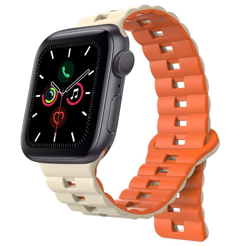Για Apple Watch Series 5 40mm, Λουρί Σιλικόνης με Μαγνητικό Κούμπωμα Αντίστροφης Πόρπης, Δύο Χρωμάτων (Αστρόφωτο+Πορτοκαλί)
