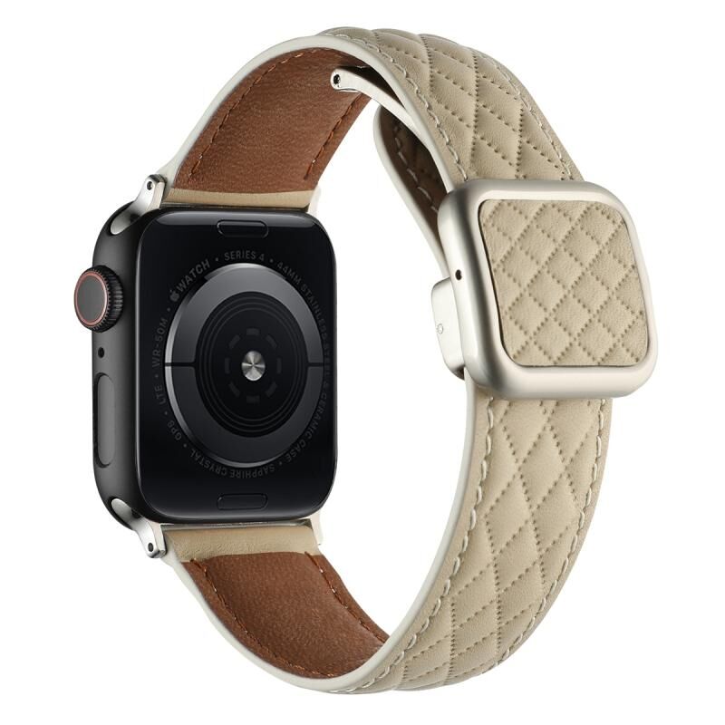Για Apple Watch Series 5 40mm Λουρί Ρολογιού Δερμάτινο με Μαγνητική Αγκράφα Τετράγωνου Σχήματος με Σχέδιο Ρόμβου (Χρώμα Starlight)