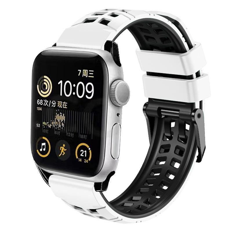 For Apple Watch Series 5 40mm Twill Dual-row Buckle Silicone Watch Band(White Black)