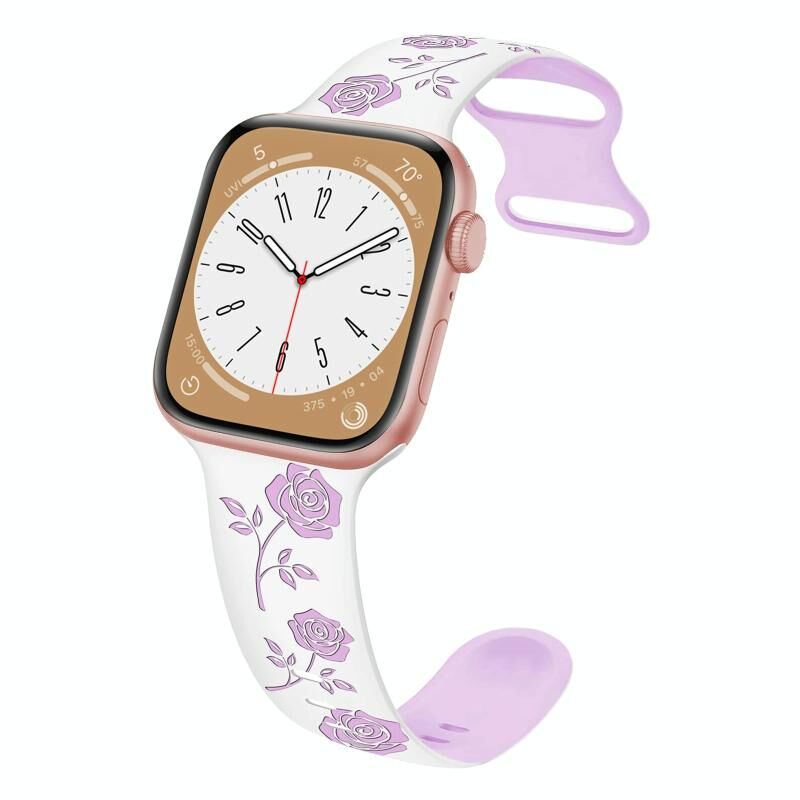 Για Apple Watch Series 5 40mm Διχρωμη Ροζ Χαραγμένη Σιλικόνη Λουράκι Ρολογιού (Λευκό Μωβ)