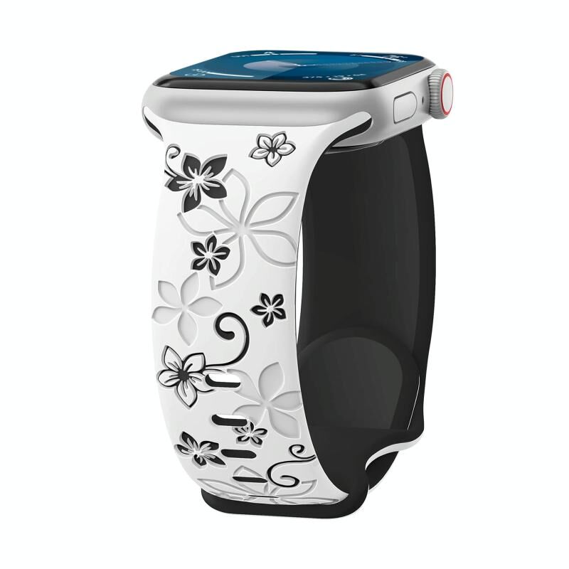 Για Apple Watch Series 5 44mm Bauhinia Διχρωμικό Χαραγμένο Λουράκι Σιλικόνης (Λευκό Μαύρο)