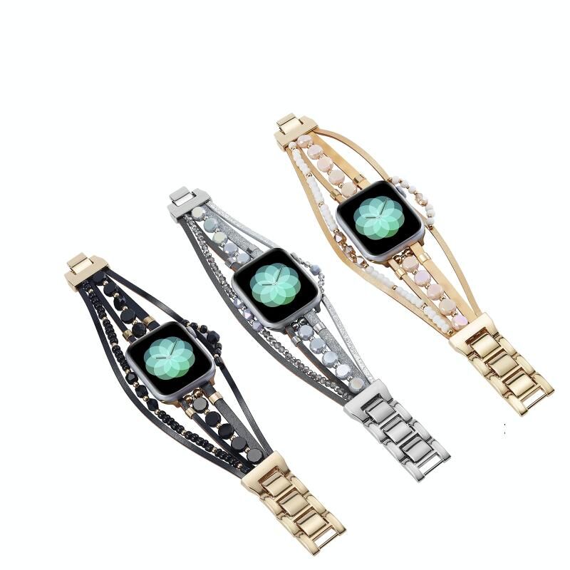 Για Apple Watch Series 5 44mm Βραχιόλι με χάντρες Εθνικού Στυλ Κρυστάλλινο Λουράκι Ρολογιού (Ασημί)