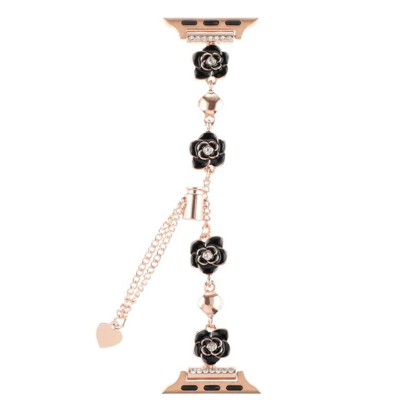 Για Apple Watch Series 5 44mm Μεταλλικό Μπρασελέ Λουλουδιού Καμέλια (Μαύρο Ροζ Χρυσό)
