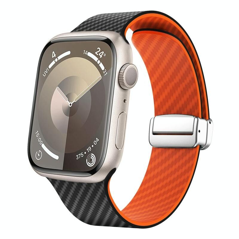 Για Apple Watch Series 5 44mm Λουρί ρολογιού από ανθρακονήματα με μαγνητική αγκράφα ασημί (Μαύρο Πορτοκαλί)