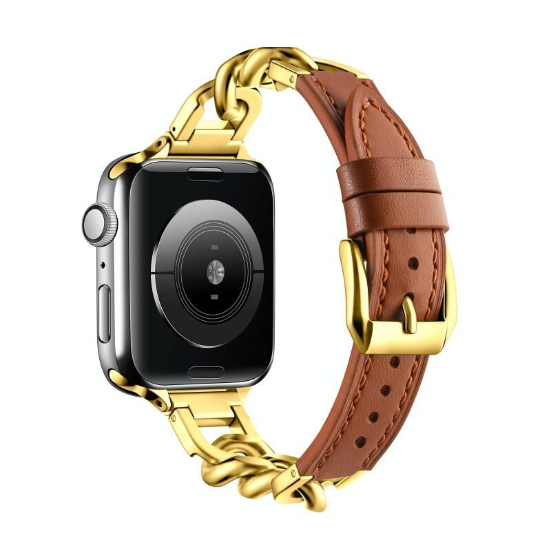 Για Apple Watch Series 5 44mm, αλυσίδα από γνήσιο δέρμα, μέγεθος: S (Χρυσό Σκούρο Καφέ)