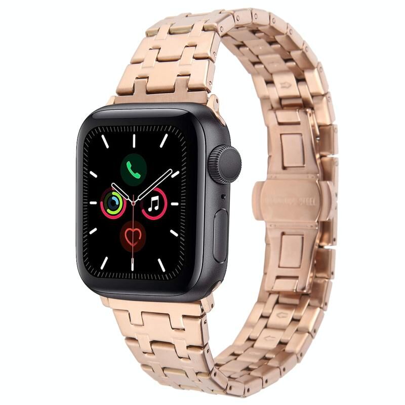 Για Apple Watch Series 5 44mm Διπλό Δαχτυλίδι από Ανοξείδωτο Ατσάλι (Ροζ χρυσός)