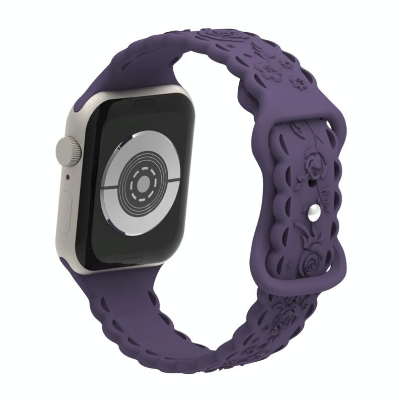 Για Apple Watch Series 5 44mm Δαντέλα 3D Ροζ Χαραγμένο Λουράκι Σιλικόνης (ρόδινο)