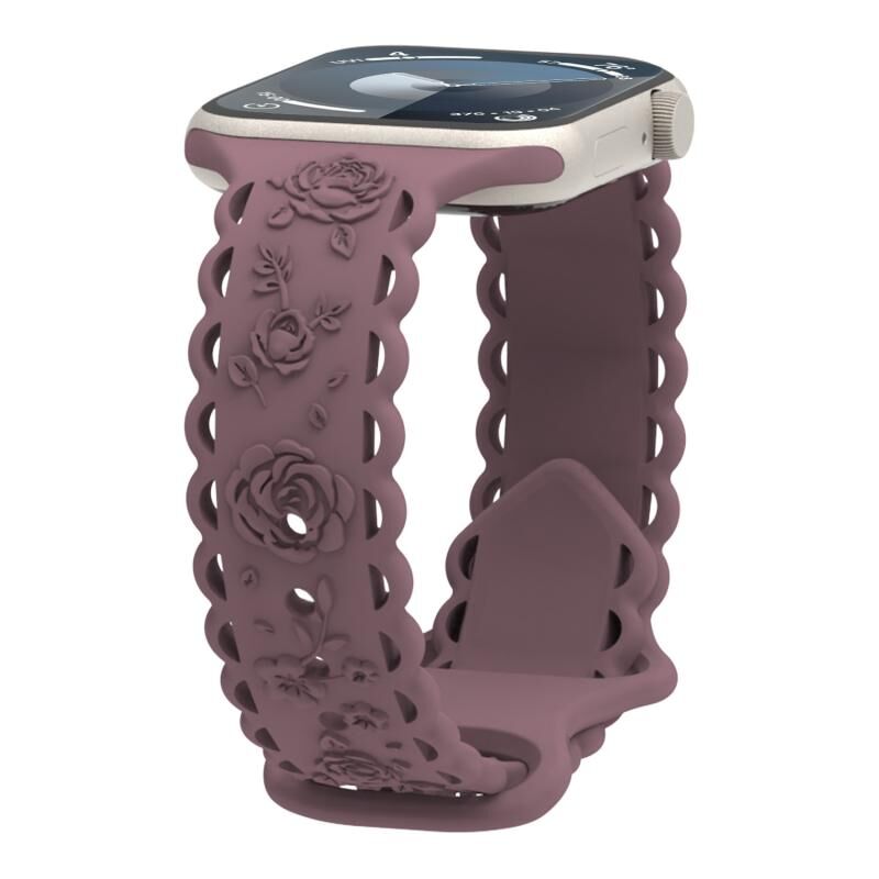 Για Apple Watch Series 5 44mm Δαντέλα 3D Ροζ Χαραγμένο Λουράκι Σιλικόνης (Μωβ καπνιστό)