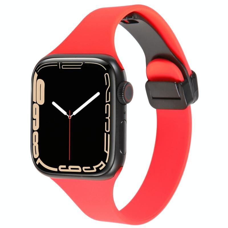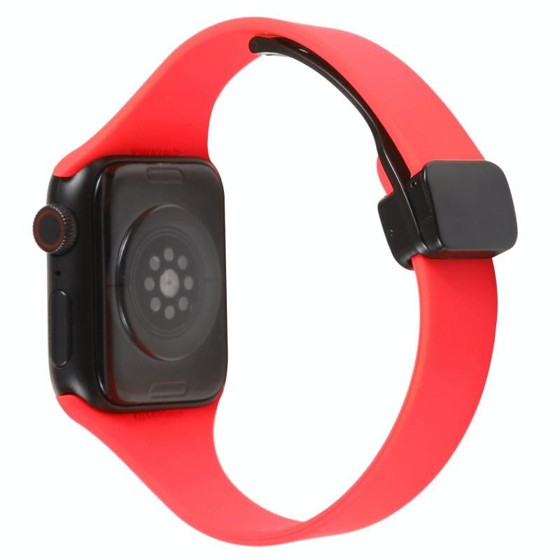 Για Apple Watch Series 5 44mm Μαγνητικό Κούμπωμα Λεπτό Λουράκι Σιλικόνης (Κόκκινο)