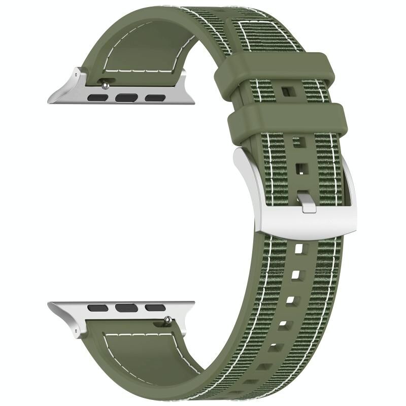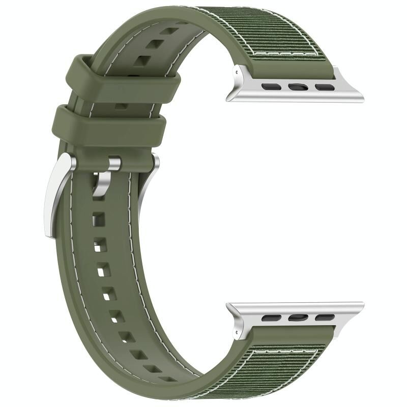 Για Apple Watch Series 5 44mm Επίσημη Αγκράφα Υβριδική Νάιλον Πλεξούδα Λουράκι Σιλικόνης (πράσινο)