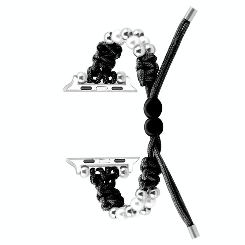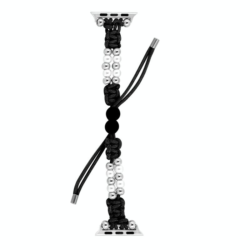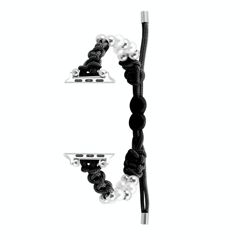 Για Apple Watch Series 5 44mm Λευκό Πλεκτό Μπρασελέ με Χάντρες Paracord και Κορδόνι Σύσφιξης (Μαύρο)