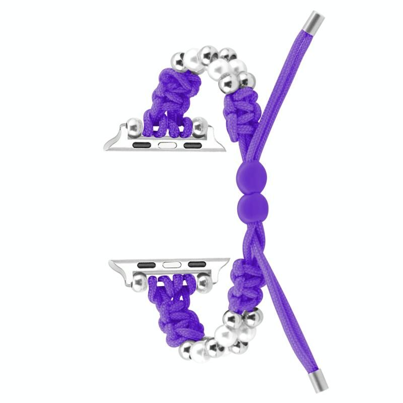 Για Apple Watch Series 5 44mm Λευκό Πλεκτό Μπρασελέ με Χάντρες Paracord και Κορδόνι Σύσφιξης (Μωβ)