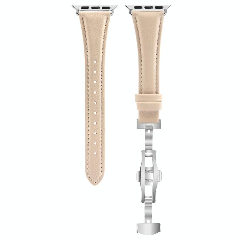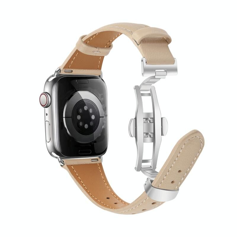 Για Apple Watch Series 5 44mm Απλό Δερμάτινο Λουράκι με Αγκράφα Πεταλούδας (Σκούρο Καφέ+Ασημί)