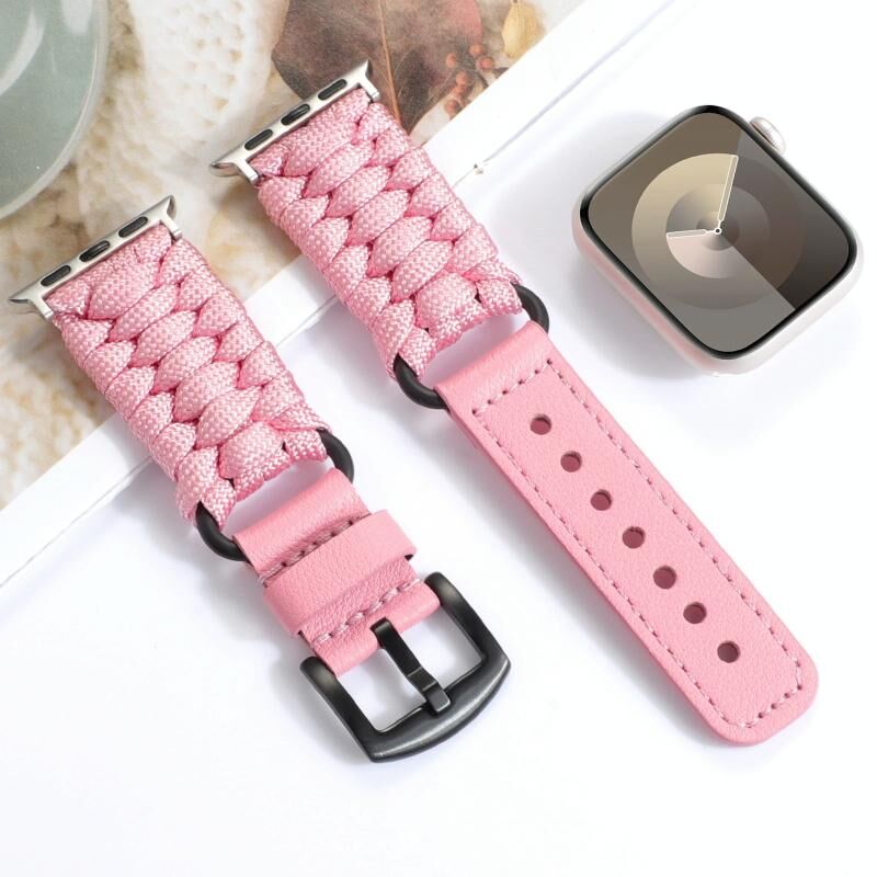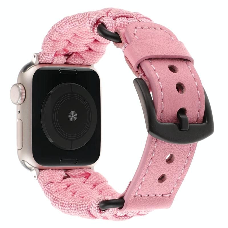 Για Apple Watch Series 5 44mm Απλό Λουρί Παρακορδίου με Γνήσιο Δέρμα (ρόζ)