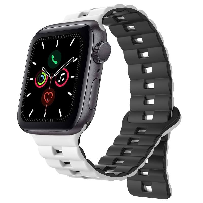 Για Apple Watch Series 5 44mm, Λουρί Σιλικόνης με Μαγνητικό Κούμπωμα Αντίστροφης Πόρπης, Δύο Χρωμάτων (Λευκό+Μαύρο)