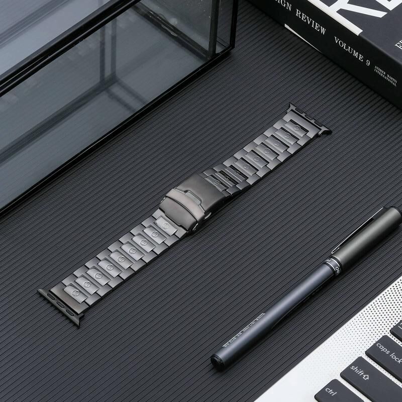 Για Apple Watch Series 5 44mm Ασφαλής Αγκράφα Τιτανίου Ατσάλινη Ζώνη Ρολογιού (Μαύρο)