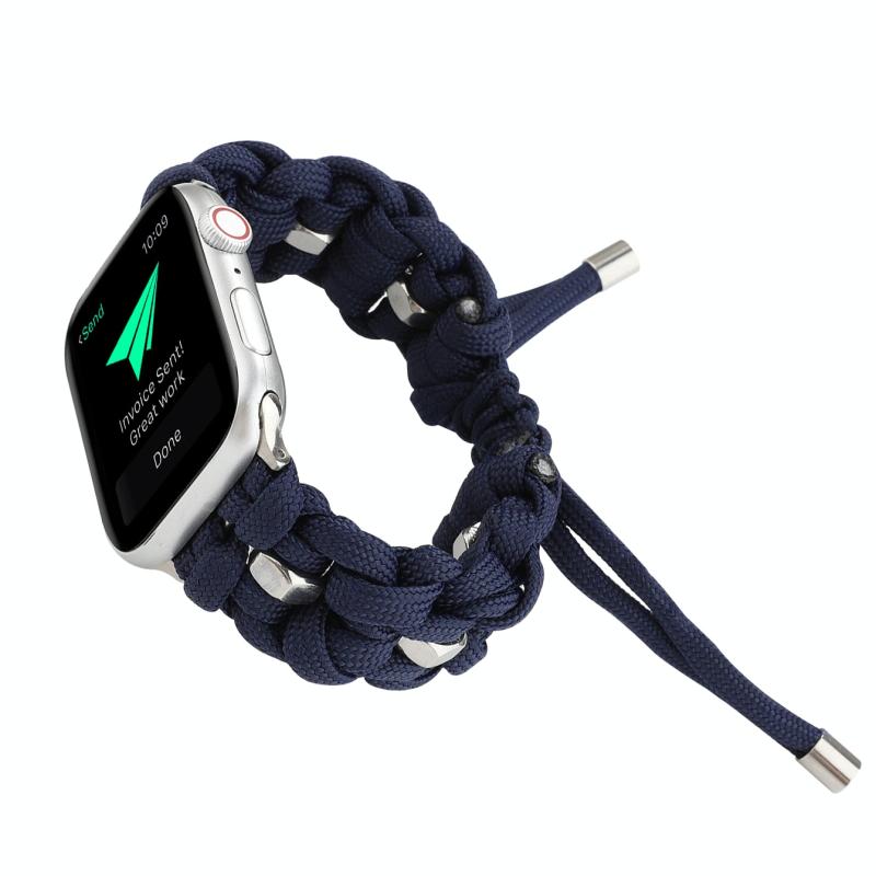 For Apple Watch Series 5 44mm Screw Nut Braided Paracord Watch Band(Blue)