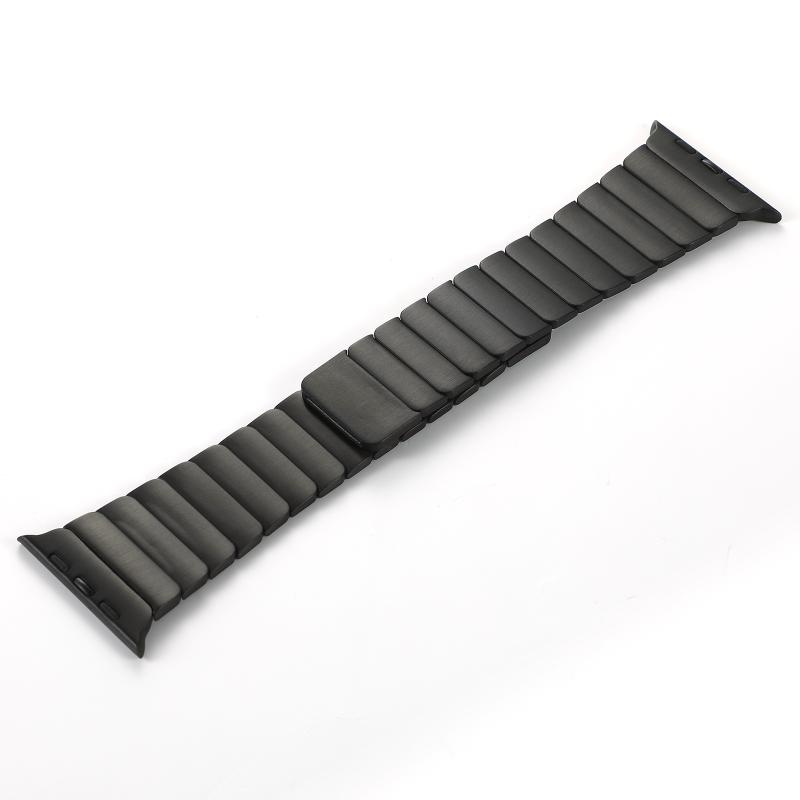 Για Apple Watch Series 5 44mm Μονοκόμματο Μαγνητικό Δερμάτινο Λουράκι Ανοξείδωτου Ατσαλιού (Μαύρο)