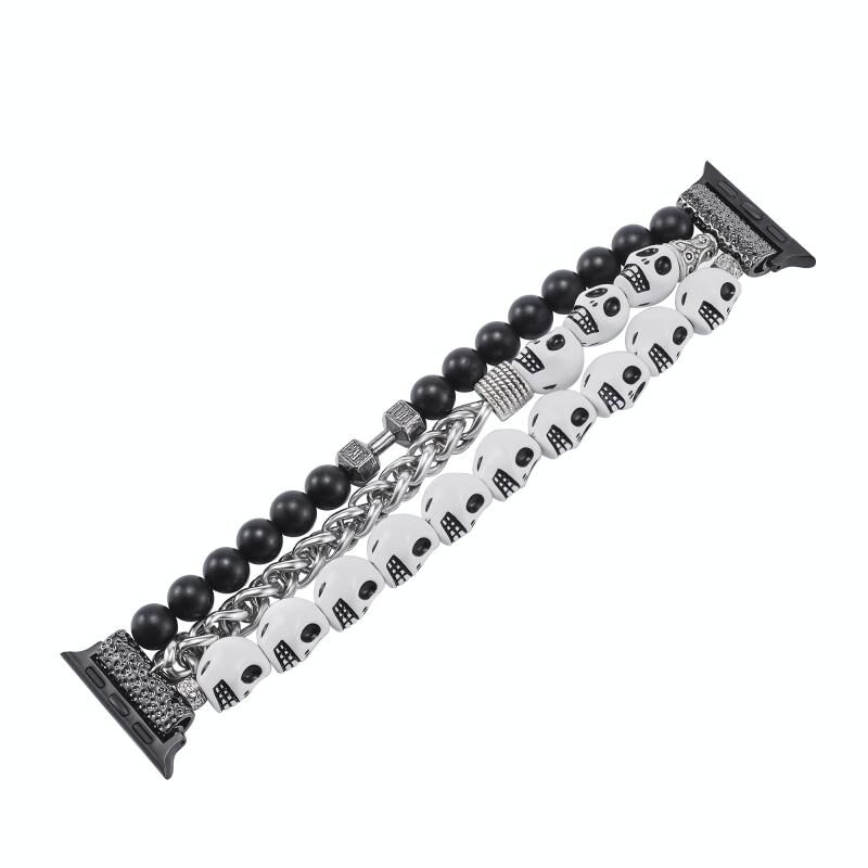 Για Apple Watch Series 5 44mm Λουράκι ρολογιού με χάντρες και σχέδιο κρανίου (Λευκό)