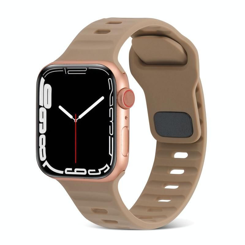 Για Apple Watch Series 5 44mm Λουρί Σιλικόνης με Αγκράφα Τετράγωνου Σχήματος Ρίγες (Καφέ)