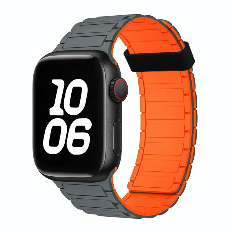 Για Apple Watch Series 5 44mm Τρίχρωμη Μαγνητική Σιλικόνη Λουρί (Γκρι Πορτοκαλί)